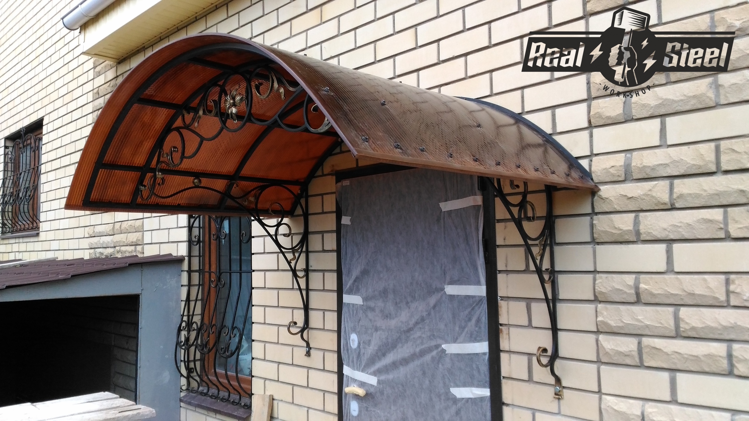 Благодаря изысканным и конструктивным формам, кованые козырьки не только защитят входящих в дом от атмосферных осадков, но и придадут экстерьеру дома элегантности. Сотрудники компании изготавливают многочисленные вариации и модификации кованых козырьков: